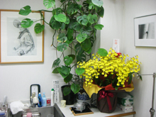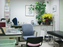 診察室コーナーには患者さまに寛いでいただくため絵と観葉植物を配置しています。